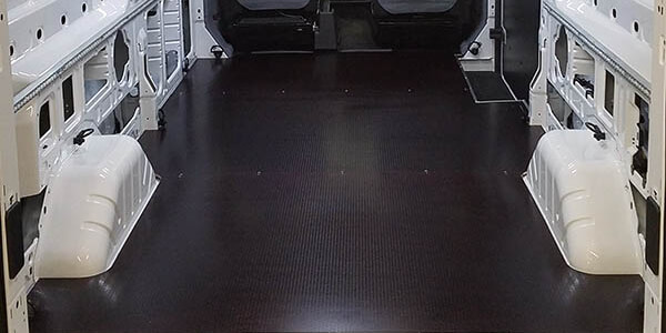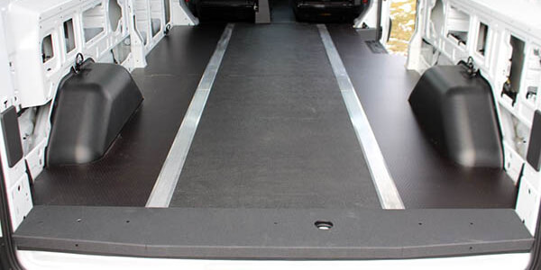 One of the first practical upgrades any work van often needs is liners for the floors and walls. Not only do they reduce noise, they protect your investment and help keep tools and cargo from moving while driving. At the same time, in our extreme weather conditions, the right floor interior insulation can help to keep your work van cooler in the summer and warmer in the winter – a critical concern when your van doubles as a shop and workspace!